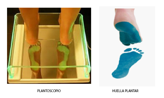 La huella de un pie plano es característica, puesto que la curva interior del pie es poco pronunciada o incluso nula, la presencia de una gruesa capa de grasa bajo la piel del pie contribuye en numerosas ocasiones a ocultar la presencia del arco longitudinal, de modo que un primer examen en un podoscopio indica pies planos para la mayoría de los niños menores de tres años.
